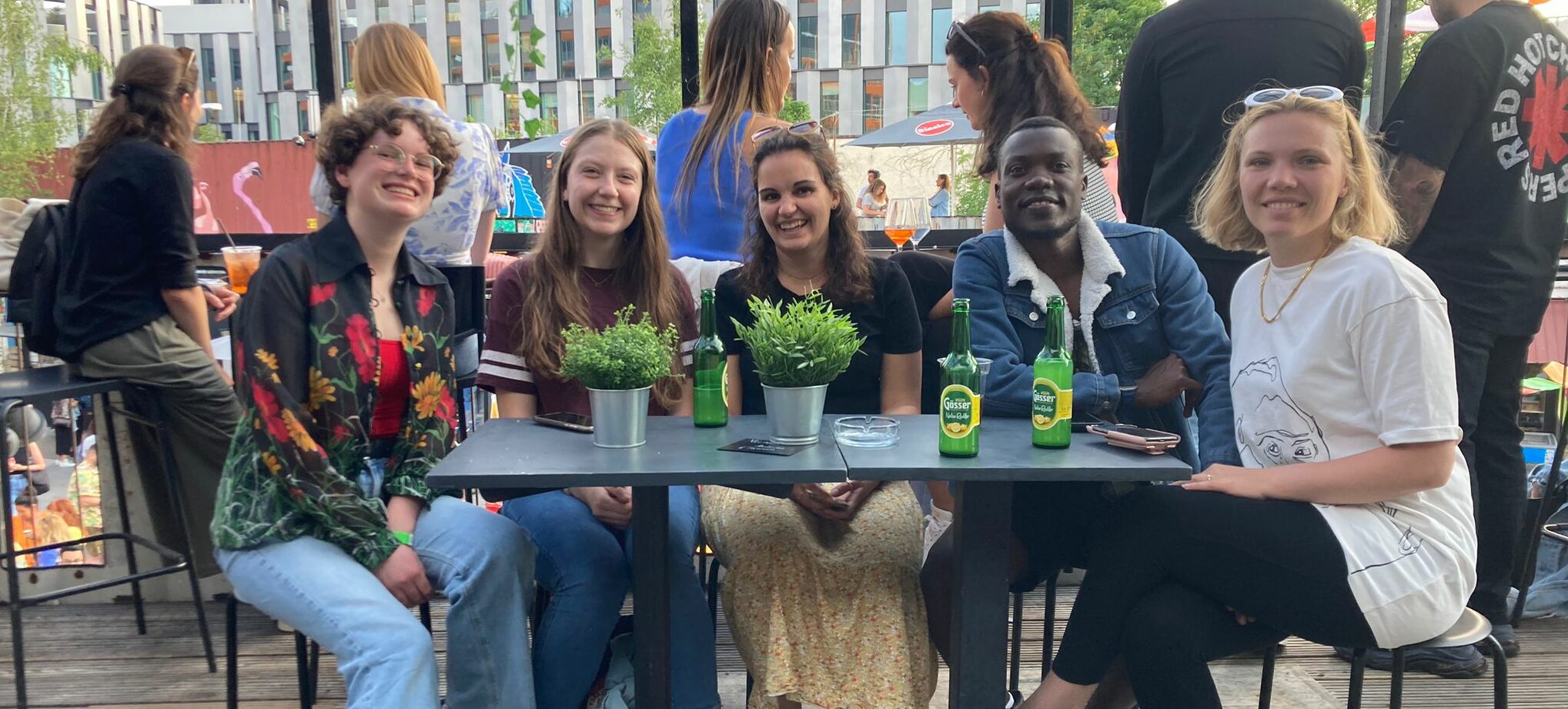 Erstmal angekommen, haben wir es uns auf der Terrasse gemütlich gemacht und mit einem Aperol in der Hand die Sonne gefeiert. Dabei bot die Situation auch eine tolle Gelegenheit, die Studierenden und Mitarbeitenden der Burke Akademie besser kennenzulernen. Im Laufe des Abends kamen auch ehemalige Mitarbeitende sowie Freunde und Familie dazu. Da das Werksviertel nicht nur gute Bars, sondern auch richtig gutes Essen zu bieten hat, mussten wir natürlich uns auch schnell auf eine improvisierte Food tour begeben. Nach veganer Bratwurst, Pommes oder auch Reis mit Gemüse ging es anschließend auf die Tanzfläche, um zu Techno-Sounds zu tanzen. Da das .FACTUM-Team mit ihren unglaublichen Dance-Skills gleich einen bleibenden Eindruck hinterlassen hat, wurden wir von den Studis der Burke-Akademie für ein TikTok rekrutiert. So wie wir Faktis halt eben sind, waren wir natürlich gleich am Start!